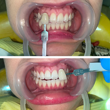 Perawatan bleaching langsung di klinik dengan bantuan dokter gigi, memberikan hasil lebih cepat dan maksimal.